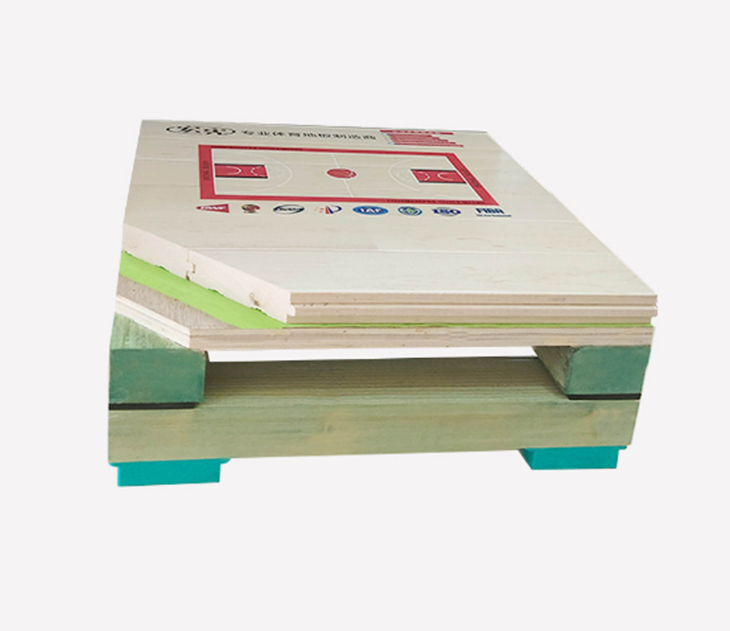 雙層板上下龍骨雙彈結(jié)構(gòu)高吸震性和連續(xù)回彈性的固定懸浮式的運(yùn)動(dòng)木地板系統(tǒng),適用于國(guó)內(nèi),國(guó)際比賽。